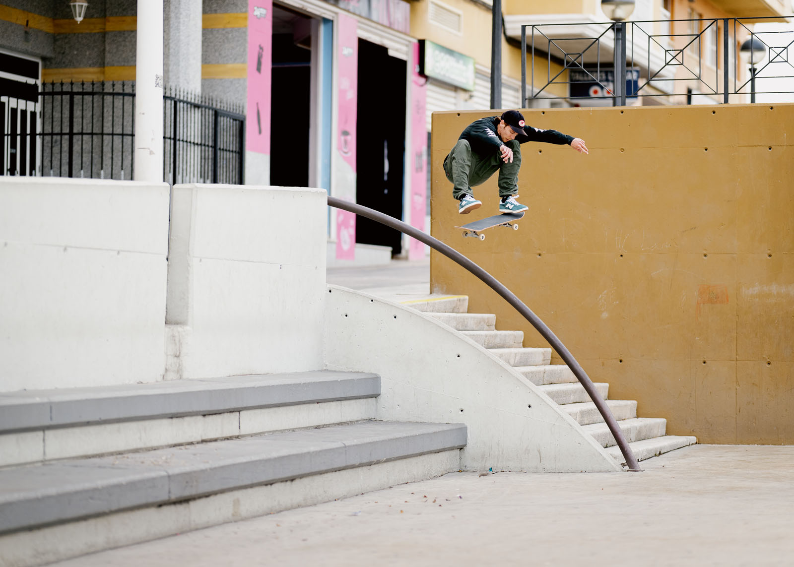 Nollie heelflip frontside noseslide pop-over, Cornellá. Ph. Gerard Riera