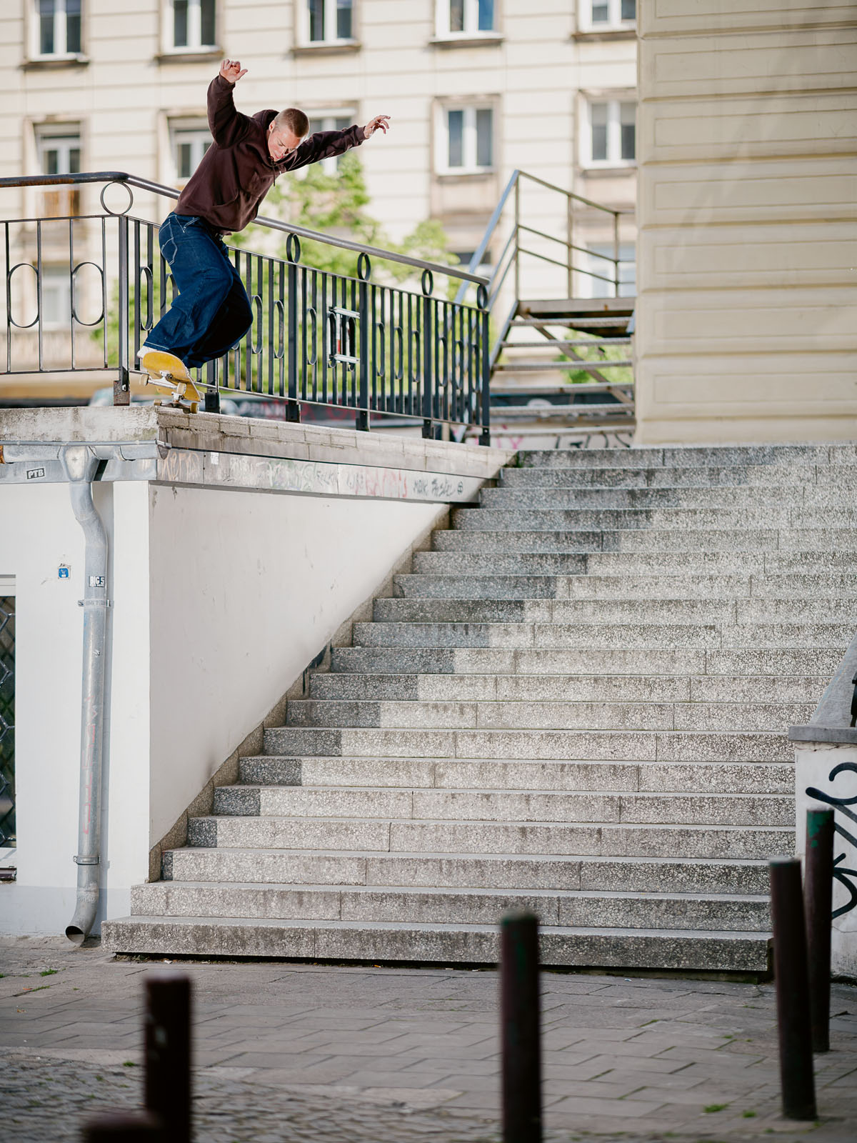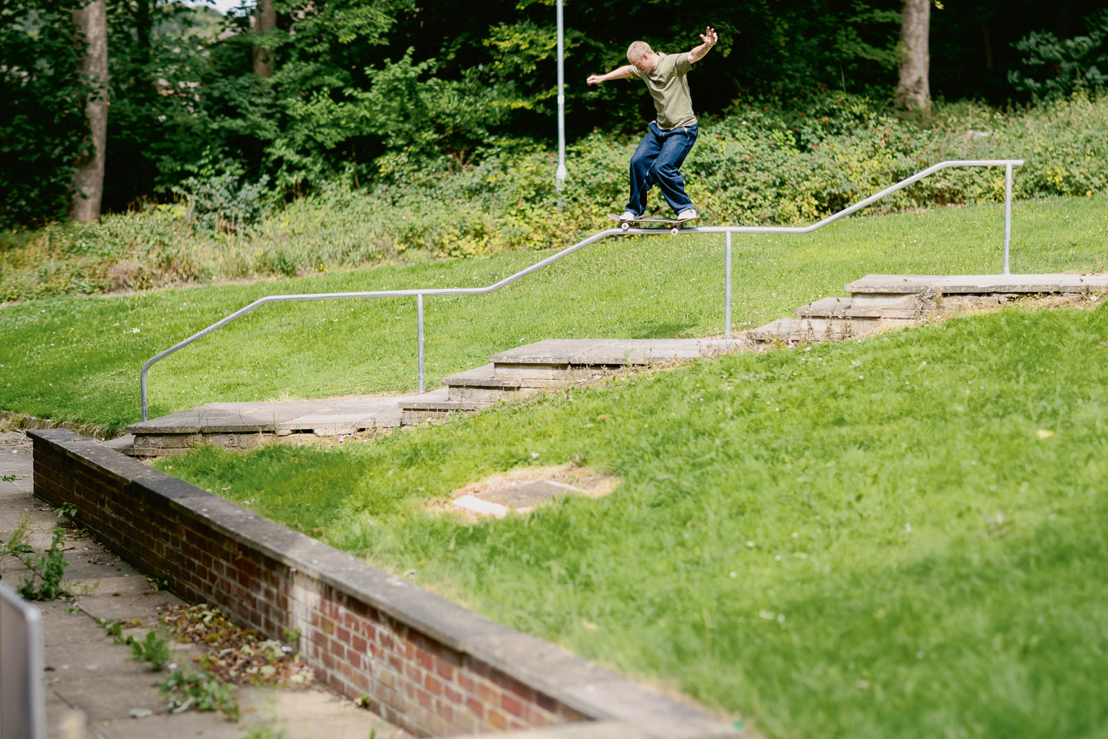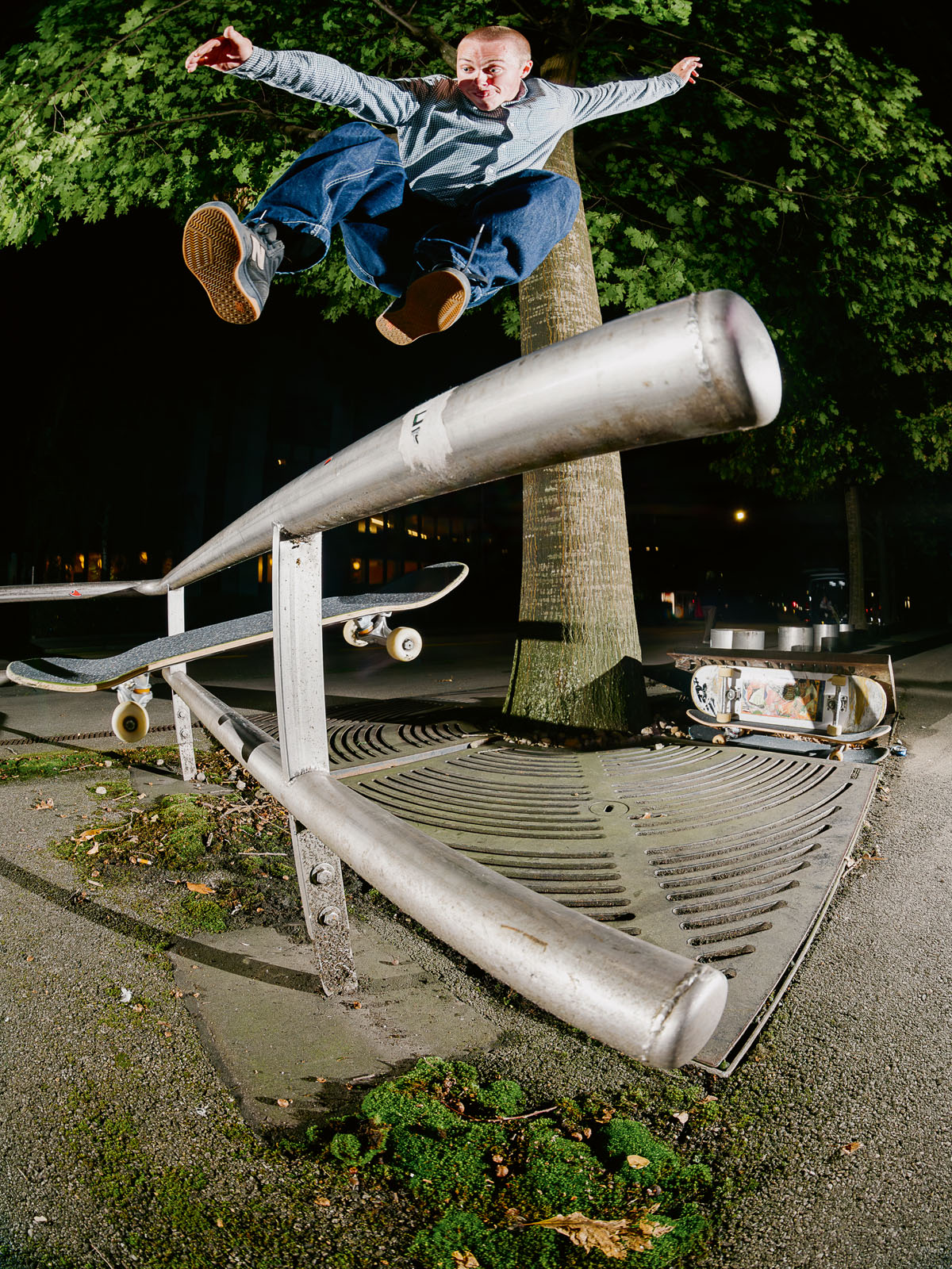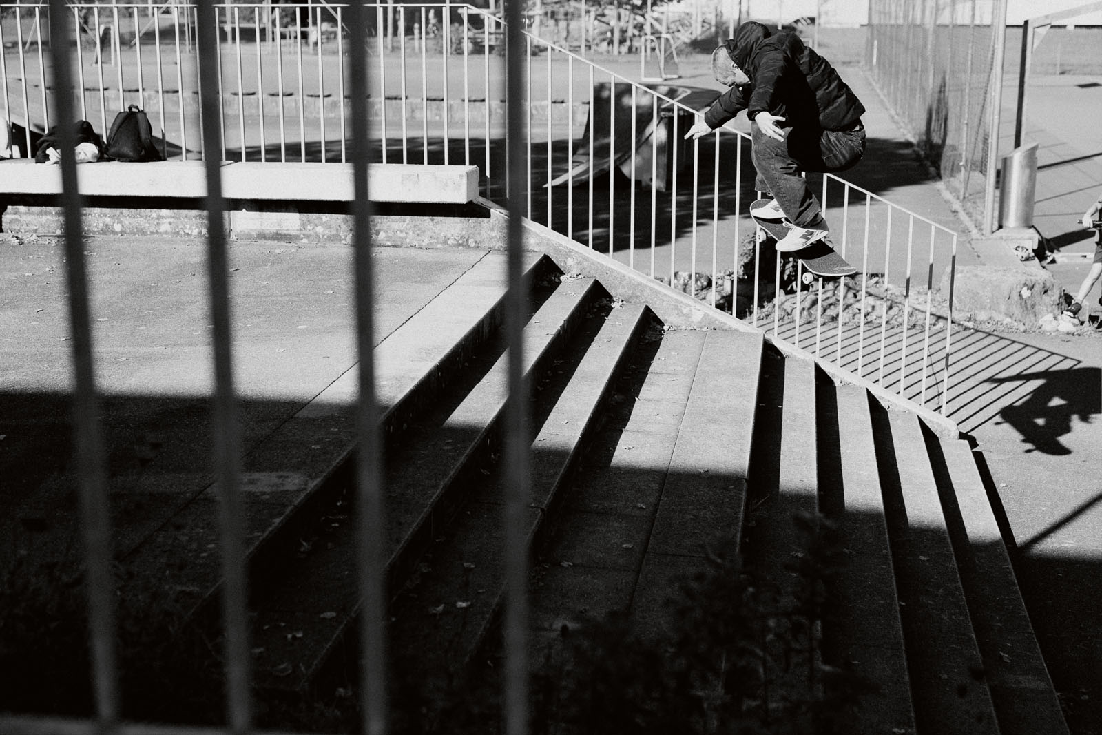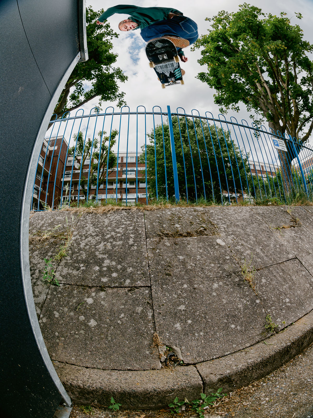 Yeah, the longer bolts made it slightly better but not good enough to skate. At this point I was invested in skating it so I worked out that the only way I could ‘fix it’ was to completely remove the handrail, redrill into the concrete and then reattach the rail into these new holes. I borrowed all the tools, worked out the optimum length of bolts to do the job and then went back dressed legit as a council worker and fixed it up. The funniest aspect to that whole story was when we went back to shoot the photo and one of the residents was leaning out of the window shouting at us. “The council have just fixed that! You’re going to damage it!” Completely oblivious to that fact that it was me who they’d seen fixing it earlier that week (laughing).